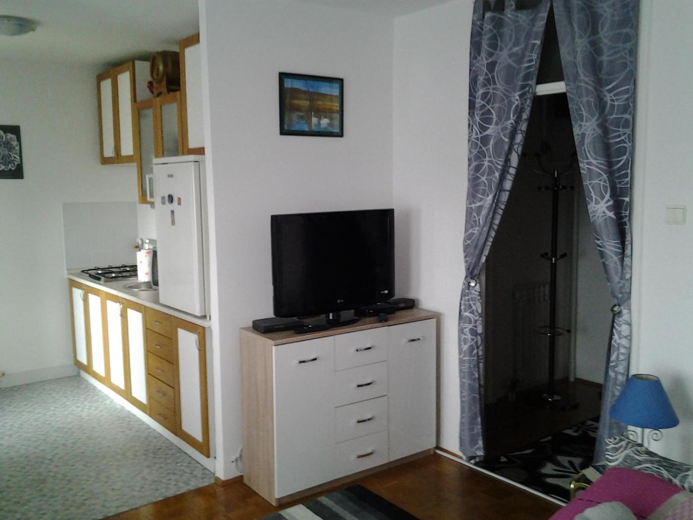 Studio Apartment. The air-conditioned apartment has 1 bedroom and 1 bathroom with a bath and a shower. Guests will find a stovetop, a refrigerator, kitchenware and an oven in the fully equipped kitchen. The apartment also features a barbecue. Boasting a terrace with mountain views, this apartment also offers a washing machine and a flat-screen TV with streaming services. The unit has 1 bed.
